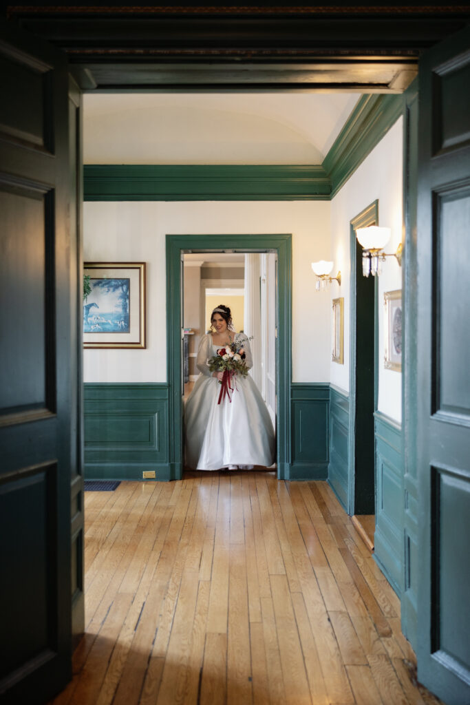 Grace & Giuseppe’s wedding day in late February at Pen Ryn Estate was such a beautiful day. The maroon bridesmaids dresses went perfect for a late winter wedding, timeless novels as center pieces at tables lit by candle light, it all gave a very romantic & victorian feel to the day… & that’s exactly how it felt.